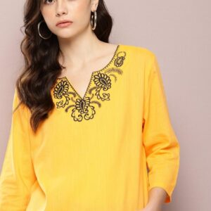 Anouk floral Embroidered Thread Work Pure Cotton Straight Kurta With Trousers & Dupatta
