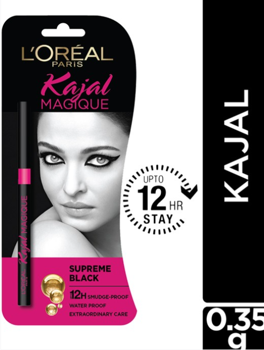 L’Oreal Paris Kajal Magique Supreme Black is black kajal that doubles up as a darker-than-night eyeliner. Along with providing a great finish, it is also enriched with ingredients like Vitamin E, Cocoa Butter, Olive Oil Esters and Vitamin C Derivative to provide extraordinary care for your eyes.