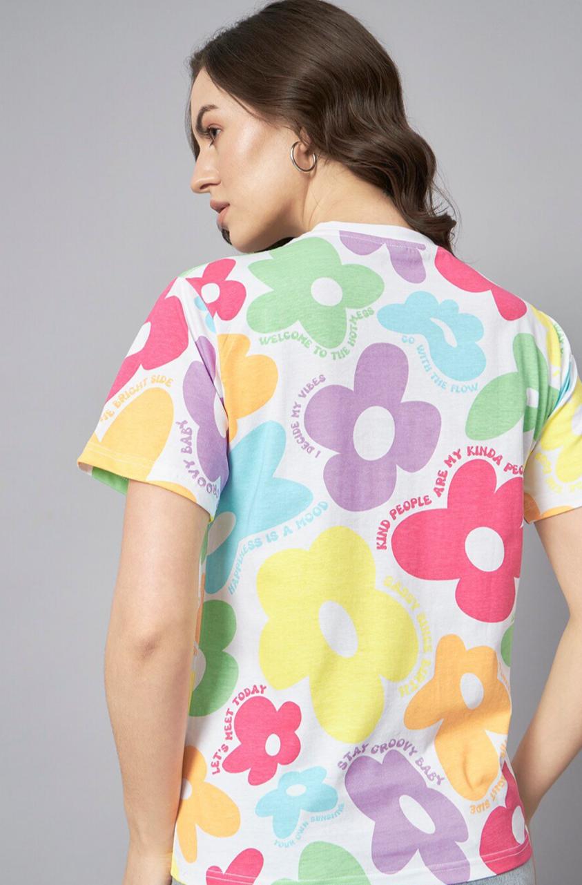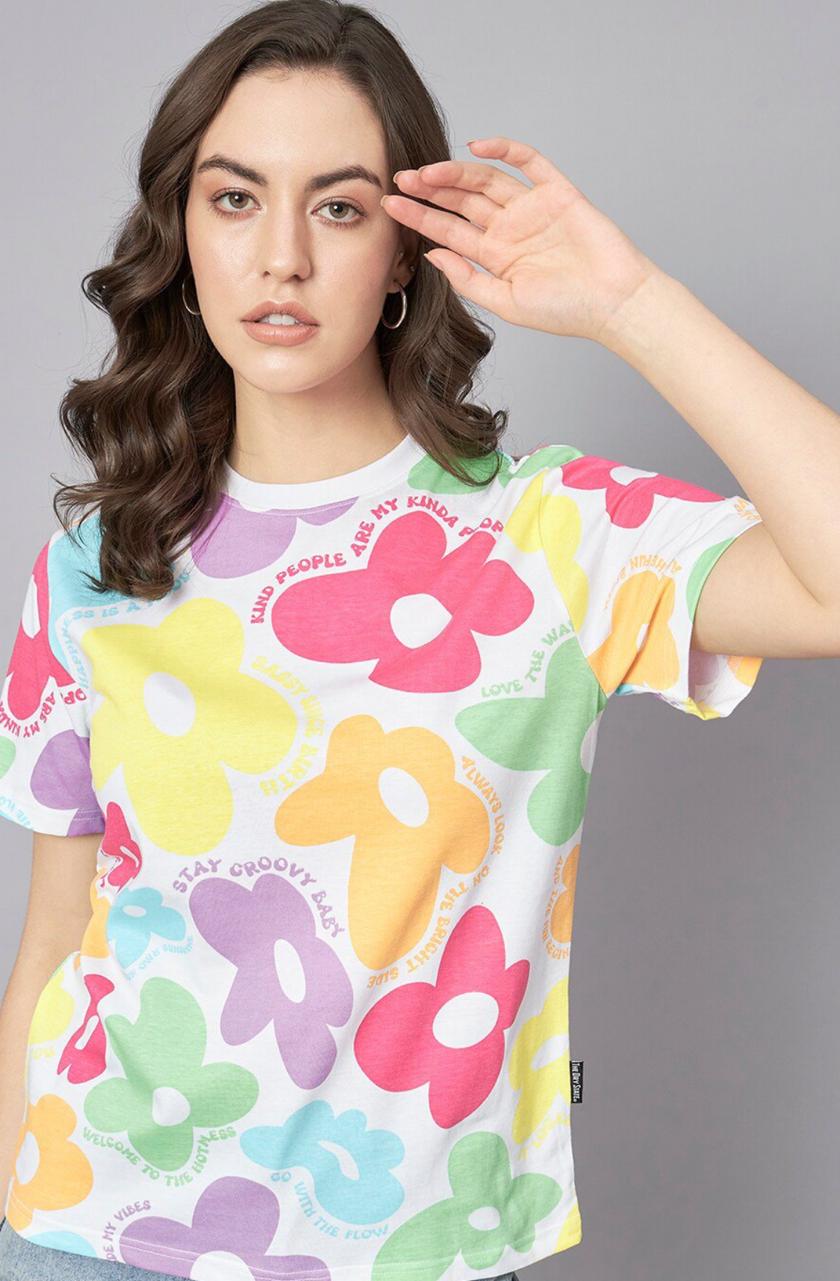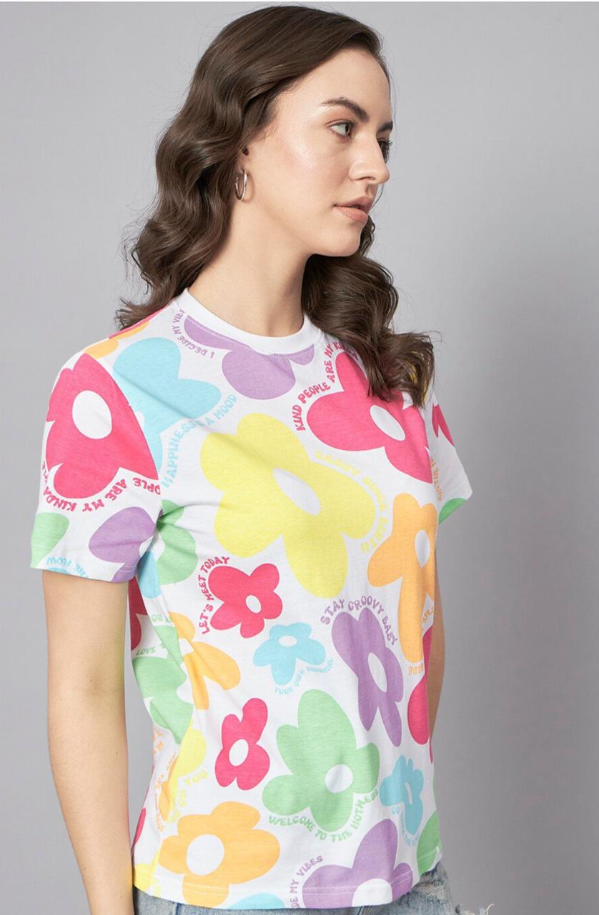 - White, pink, purple, yellow T-shirt for women