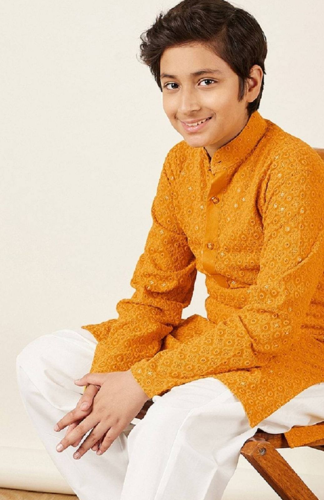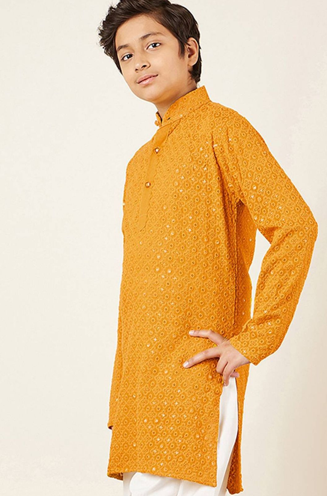 Be the first to review “Aj DEZInES Boys Ethnic Motifs Embroidered Mandarin Collar Sequinned Cotton Kurta”