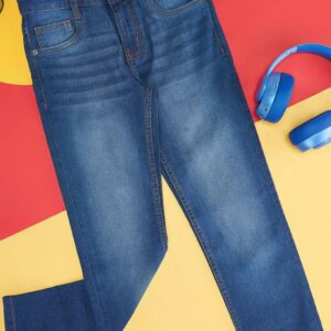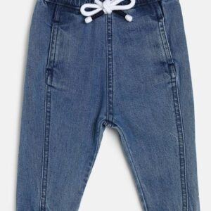 Jeans in washed, superstretch denim for maximum mobility. Slim fit with an adjustable, elasticated waist, a fake fly with a button, and front and back pockets.
